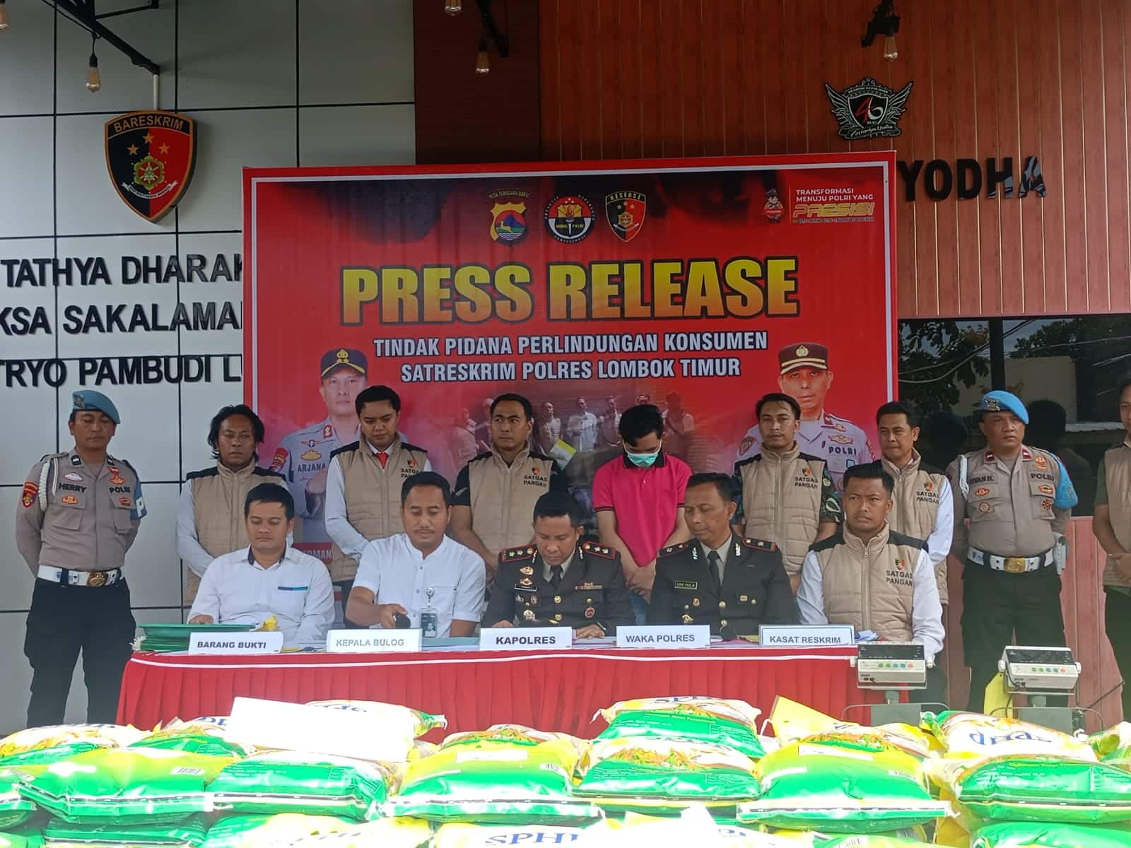 Dalam kasus ini, polisi menetapkan FP (33), warga Desa Gelora Kecamatan Sikur, sebagai tersangka. Tersangka FP diduga memproduksi atau memperdagangkan beras SPHP yang tidak memenuhi standar mutu dan komposisi sebagaimana tercantum dalam label kemasan.