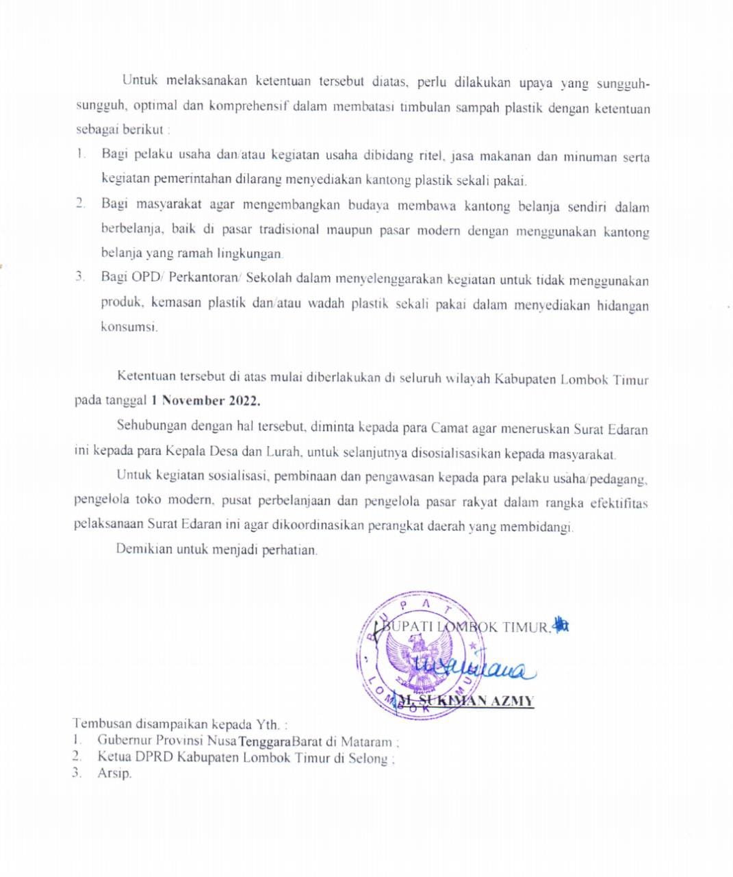 SE Bupati Lombok Timur nomor 267.1/LH/2022