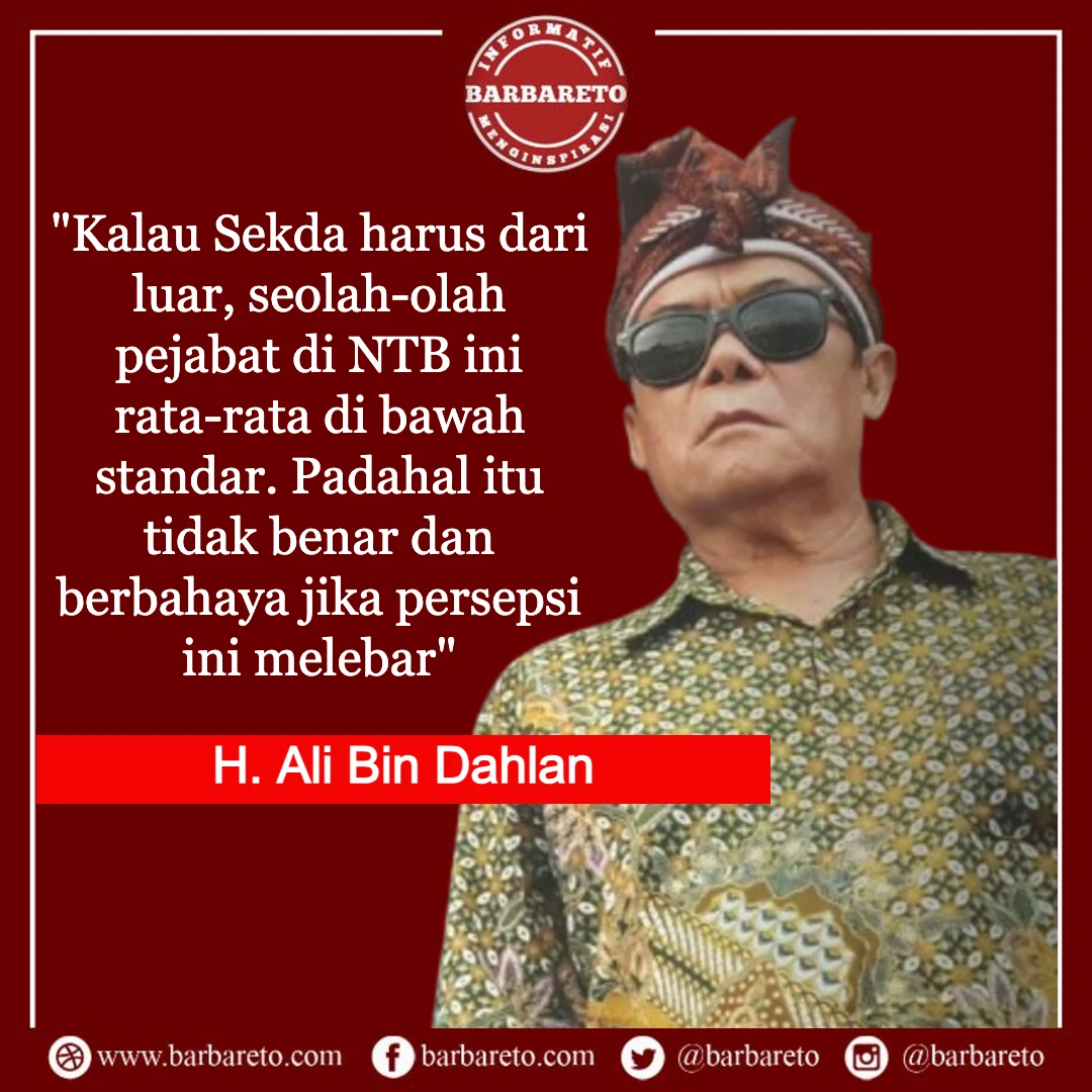 BARBARETO.COM – Penunjukan Sekretaris Daerah (Sekda) Provinsi Nusa Tenggara Barat (NTB) kembali menjadi sorotan, salah satunya dari H. Ali Bin Dahlan, mantan Bupati Lombok Timur 2 periode.
